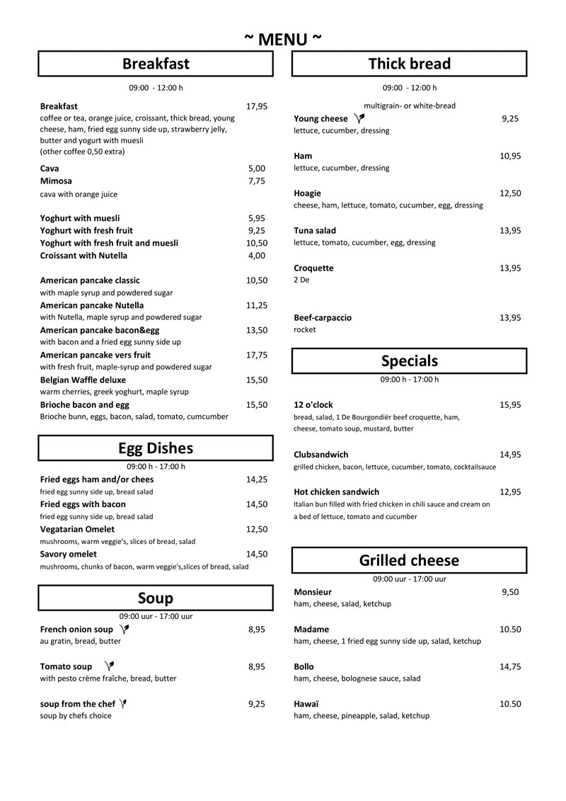 Menukaart Centre Ville
