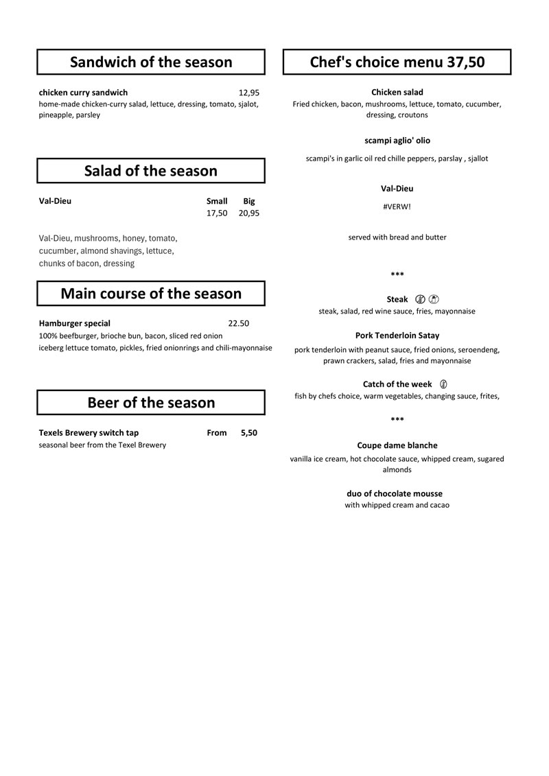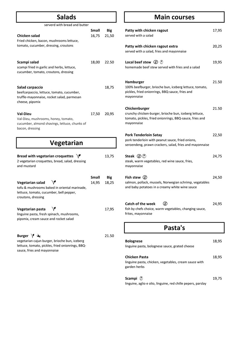 Menu en drankenkaart